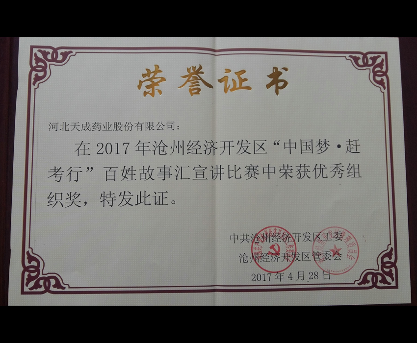 我公司被評為“優(yōu)秀組織獎(jiǎng)”